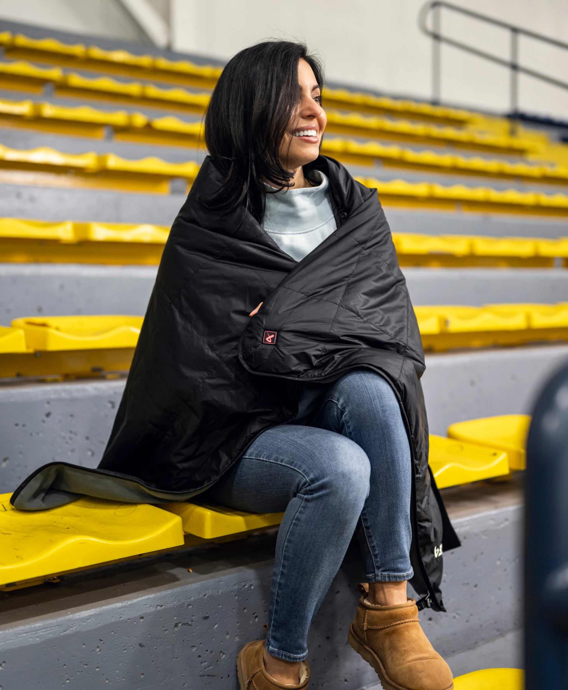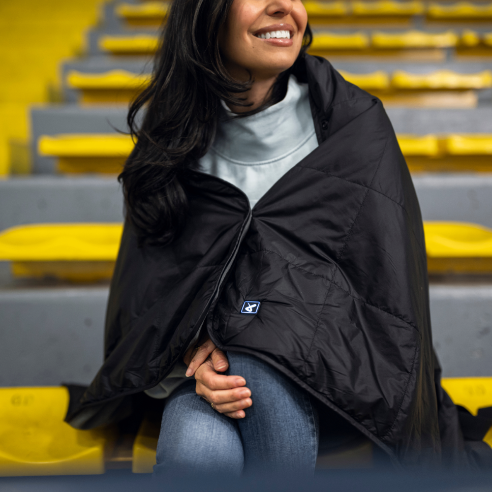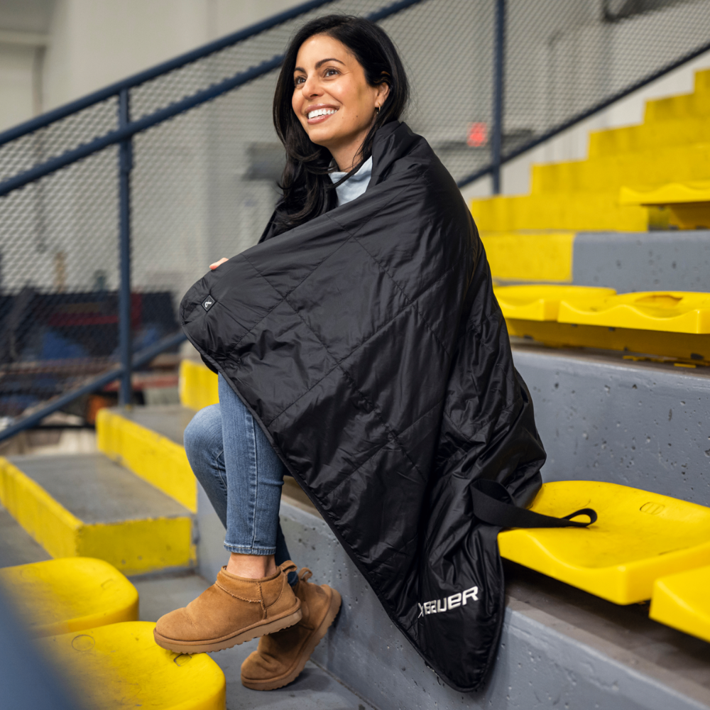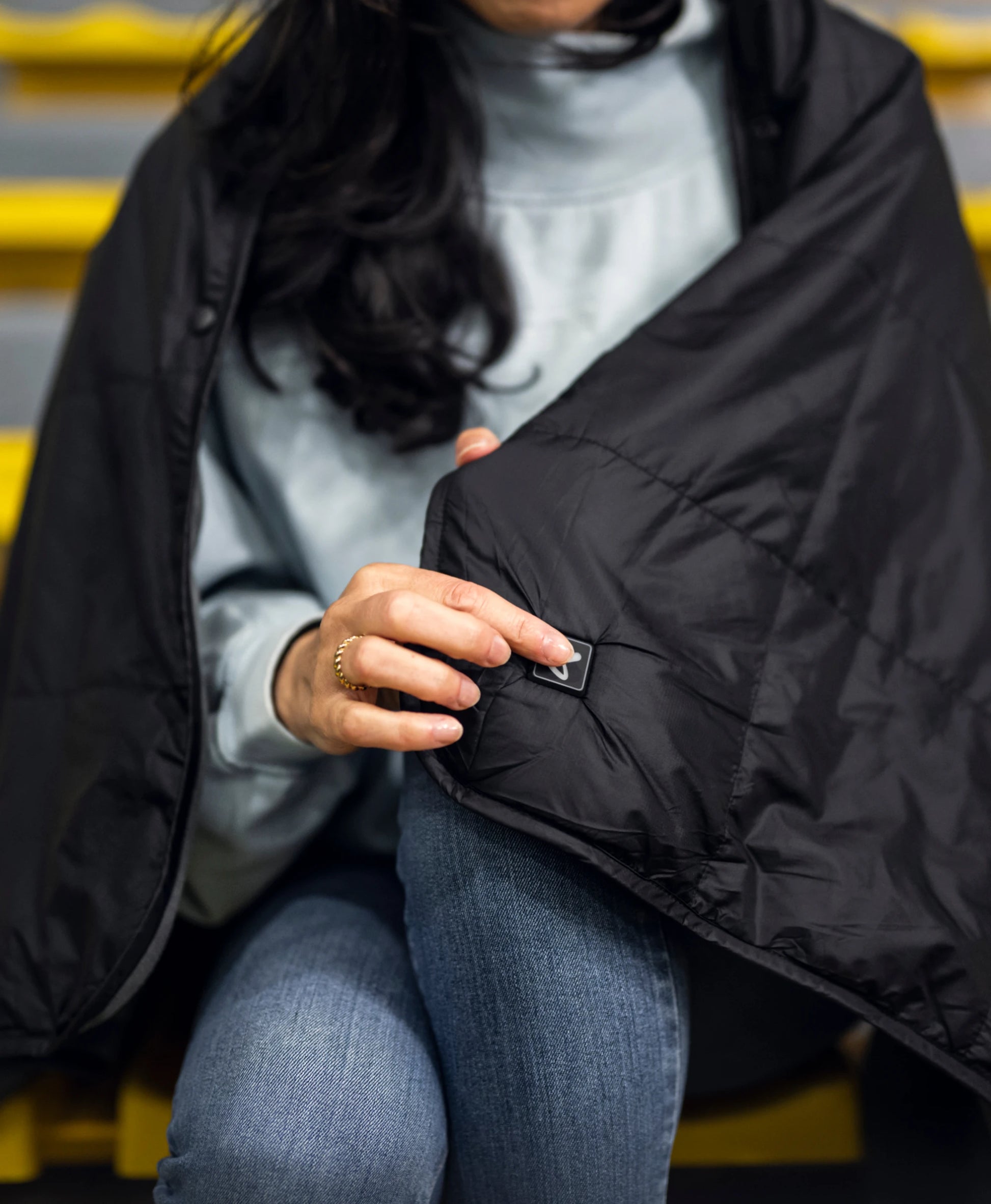 - During cold games outside or on the ice rink, use the snaps to wear the blanket like a shawl for full-body warmth.