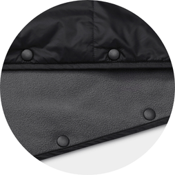 - Durable and water-resistant nylon ripstop shell with soft polar fleece backing