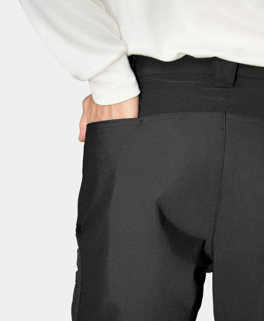 - Three(3) heating zones: left and right thighs, and lower back—strategically placed to provide warmth where traditional work pants fail