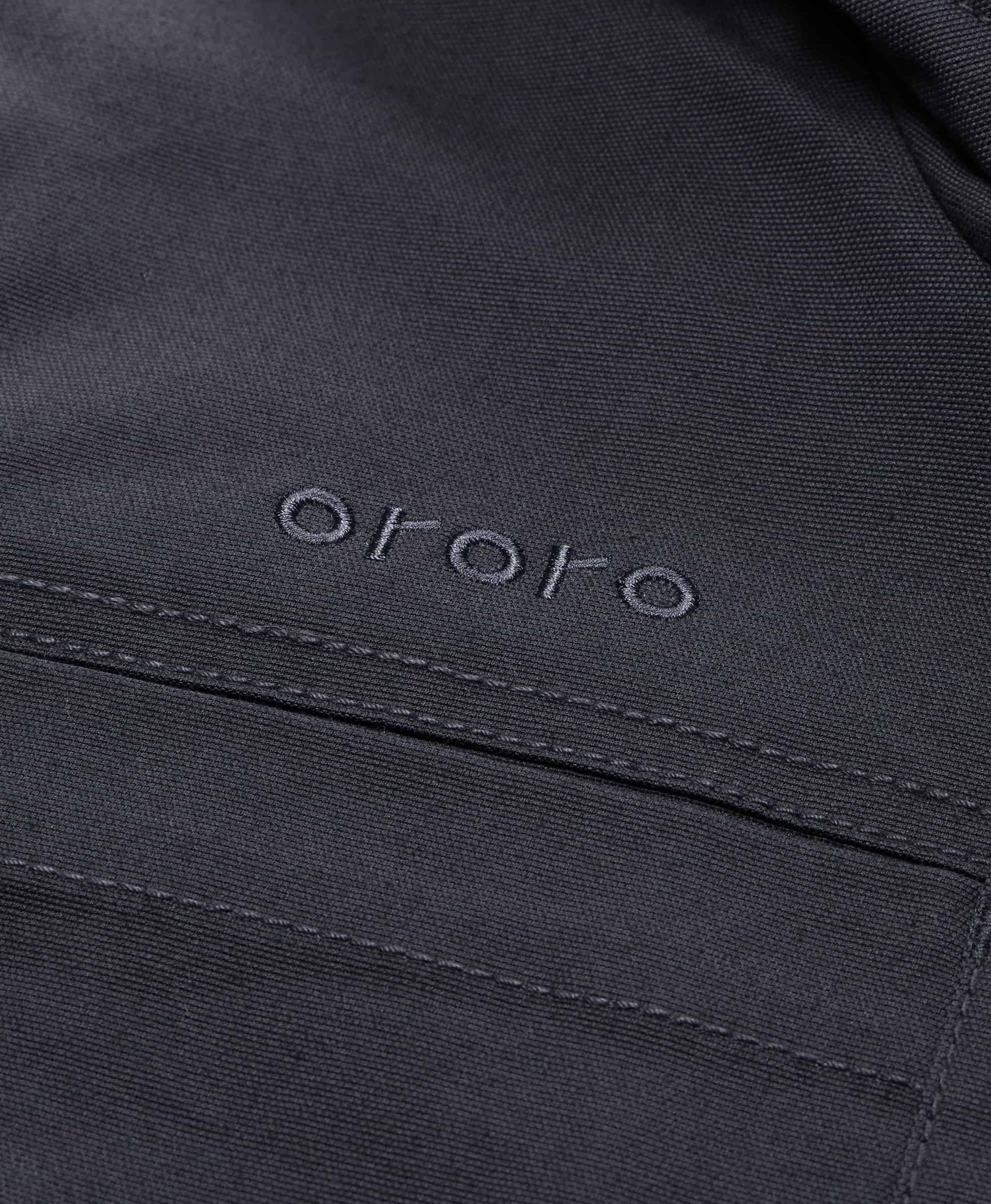 The jacket features a dual-control system: the ororo-logo button controls the chest and back heating zones, while the "A" button manages the heat for the arms. -