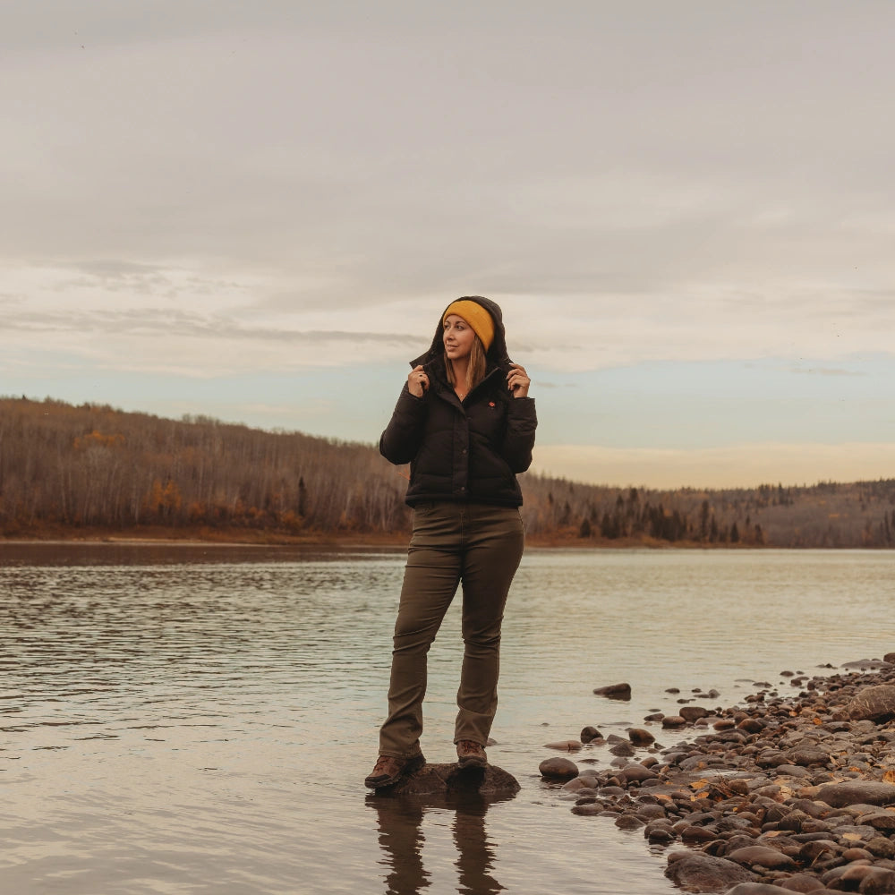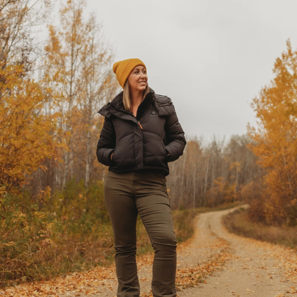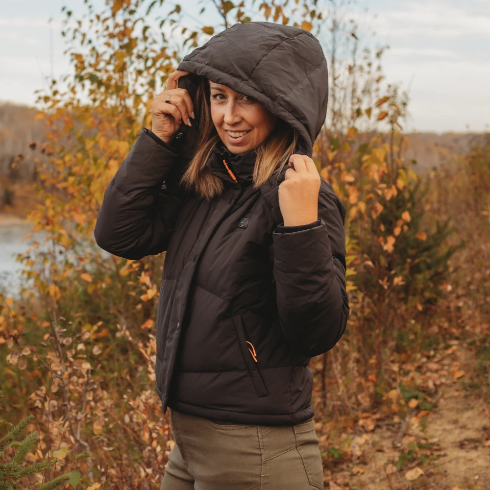 The Cloudpop Women’s Heated Puffer Down Jacket delivers reliable warmth across four targeted heating zones, while featuring a modern, cropped look with a dropped shoulder. Crafted with water-resistant fabric, 800-fill RDS-certified down, and a removable hood, this jacket provides lightweight insulation and comfort without the bulk.