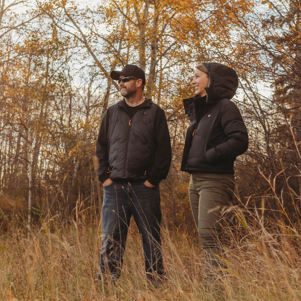 - 4 strategically placed heating zones across the left & right hand pockets, collar, and mid-back provide up to 8 hours of warmth for all-day wear.