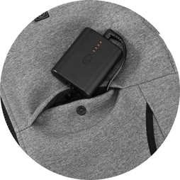 - 4 heating zones provide up to 12.5 hours of balanced warmth across the left and right chest and upper and lower back.