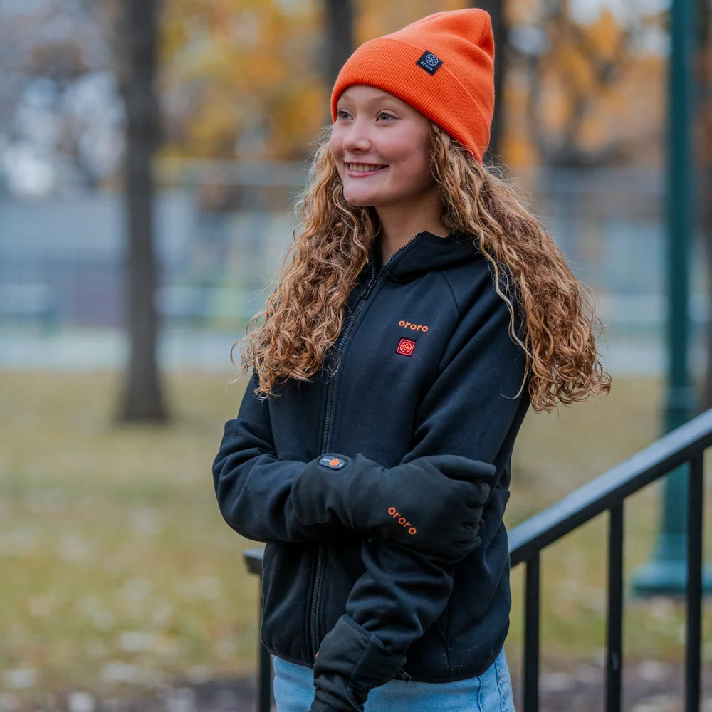 Parents trust ororo for reliable warmth, and now kids can enjoy it too! ororo’s first-ever Kids’ 4-Zone Heated Fleece Hoodie features four heating zones with up to 12.5 working hours of heat, soft brushed fleece lining, a full front zipper, and four pockets. Machine washable, this is a great everyday jacket for kids going to school, hanging out with friends, and outdoor play.