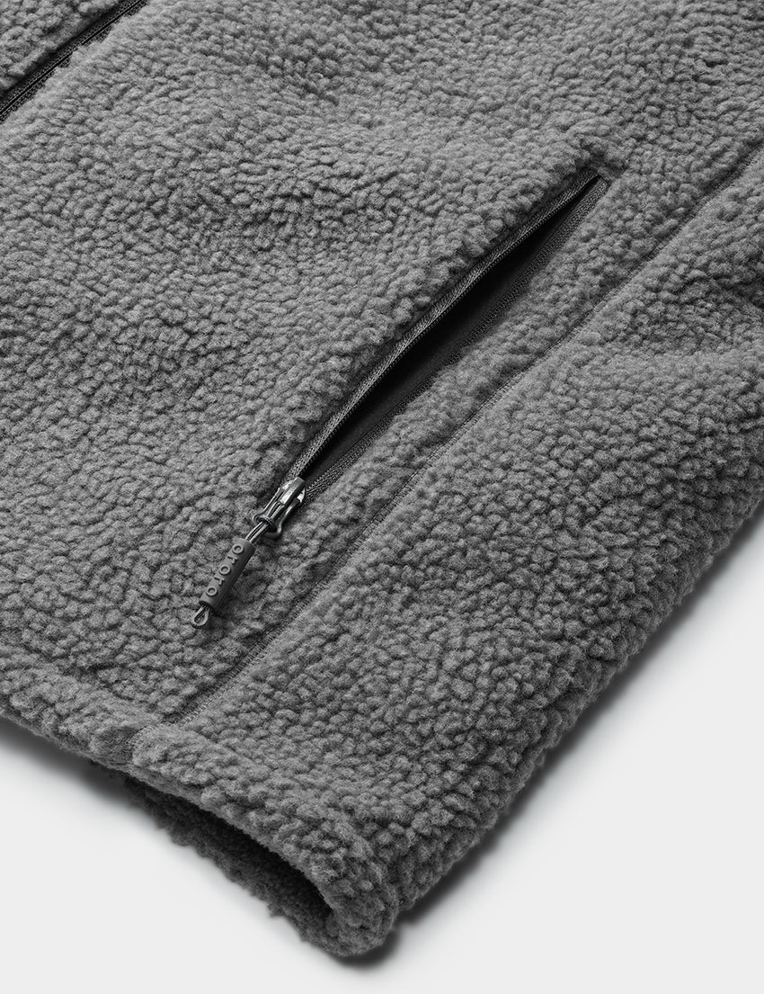 For the very first time, ororo’s heated clothing will feature shearing fleece crafted with REPREVE® 100% recycled yarn, a standout at heat retention and a stylish look. A full-zip closure for easy on-and-off, plus armholes with elastic binding to allow easy movement.