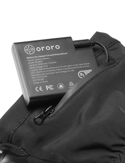 - Slim Batteries: The glove batteries are slim and fit almost unnoticeably into the zippered pocket on the extended gauntlet. The battery may be small, but the power isn’t!