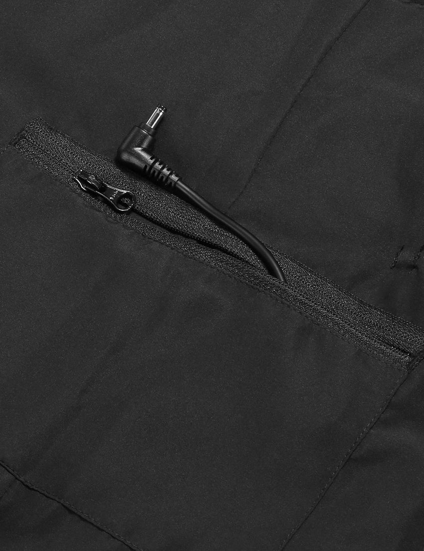 - 4 carbon fiber heating elements generate heat across core body areas (left & right pocket, collar, mid-back).