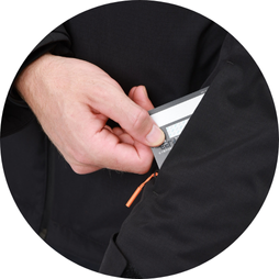 - Reflective strips on sleeves enhance visibility and safety.