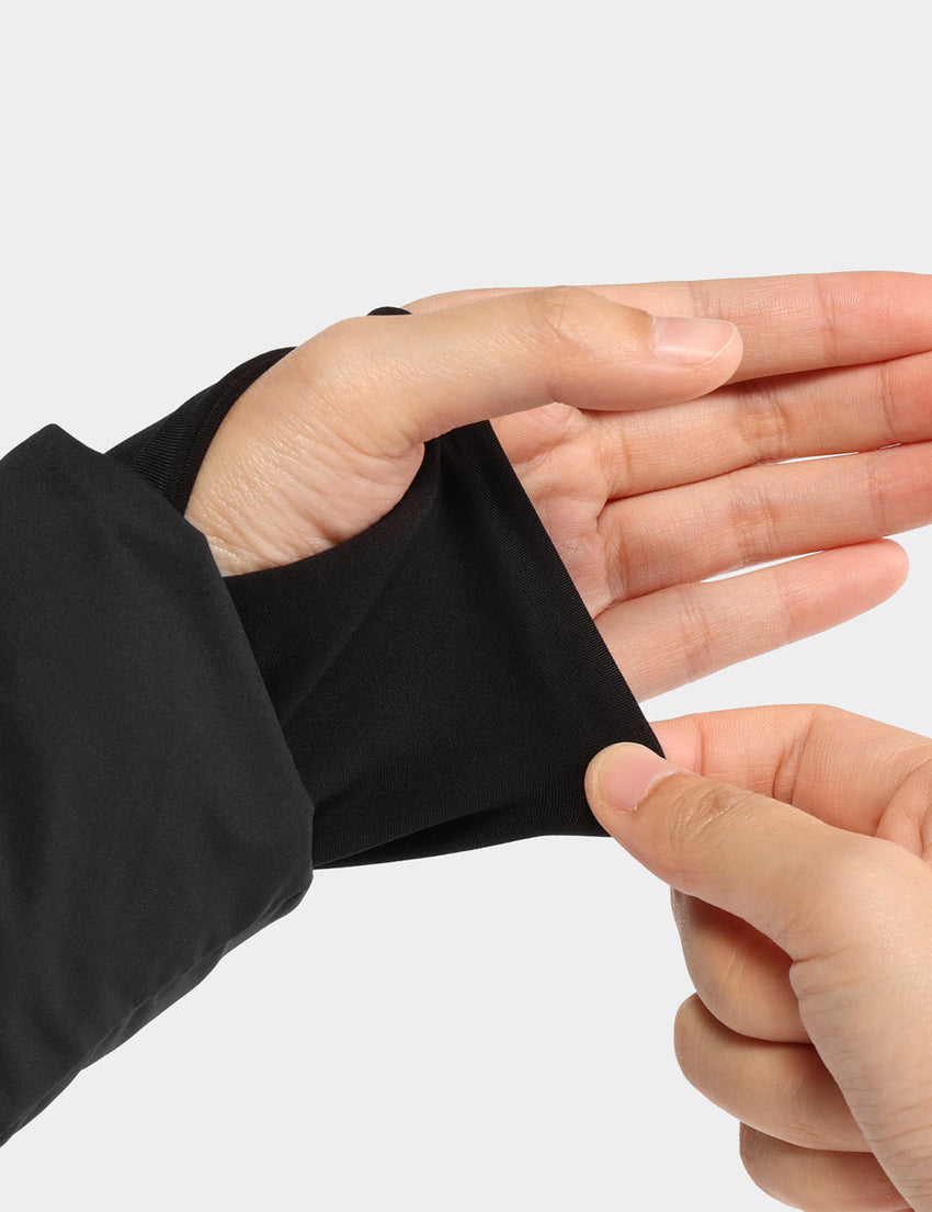 - Thumb hole storm cuffs prevent cold air from getting inside.