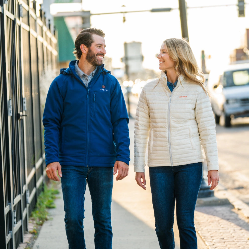 Bringing warmth, function, and sleek style together, the Men's Paragon Heated Jacket is the ideal layer for those on the go. Built with a water-resistant shell, this jacket shields you from light rain while keeping you comfortably warm with FELLEX ® bluesign®-certified insulation that balances warmth without adding bulk. Modeled after ororo's classic heated jacket, the Paragon features a modern, low-profile black zipper, making it a versatile choice for commuting, weekend activities, or outdoor events. Whether in the city or on a casual adventure, the Paragon combines practicality with refined style, offering an upgraded everyday essential.