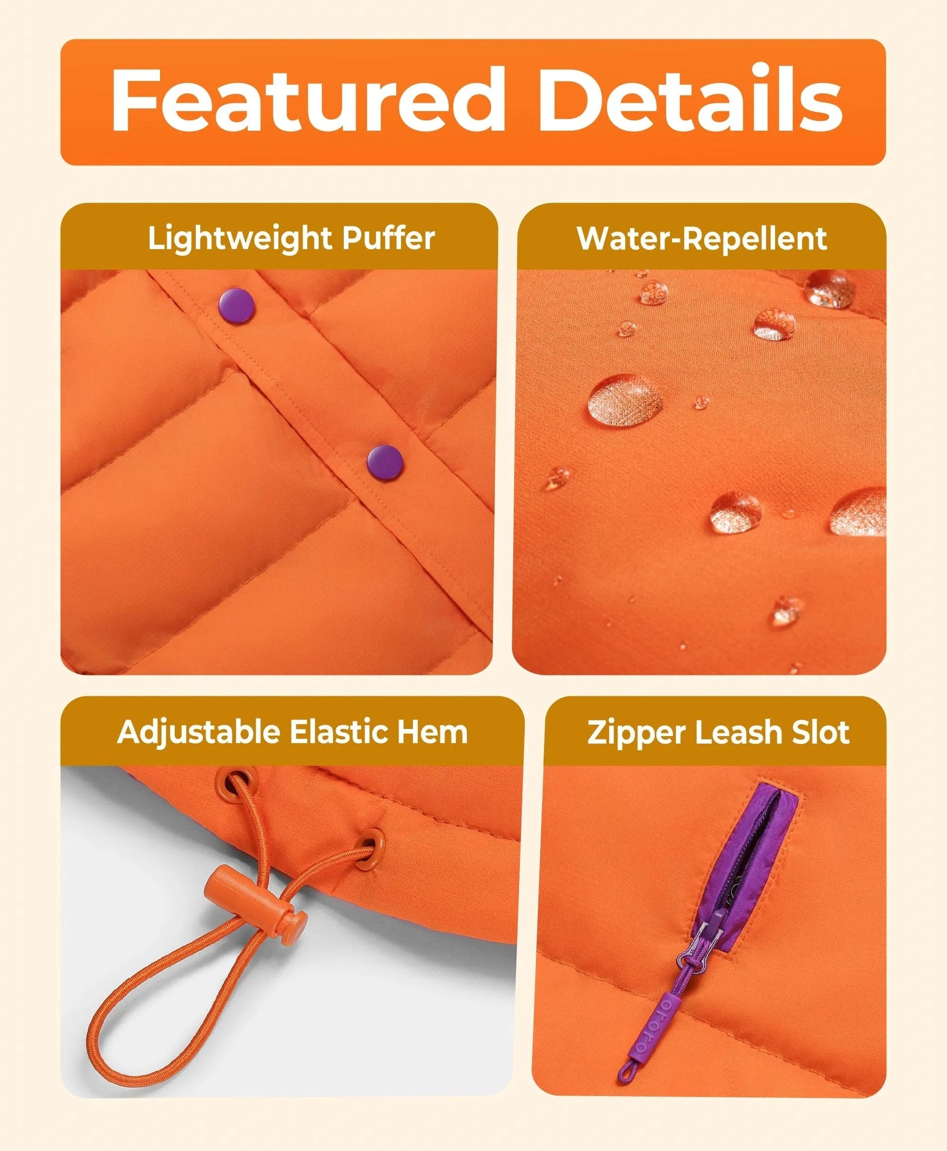 - Zippered leash opening under the collar for harness compatibility