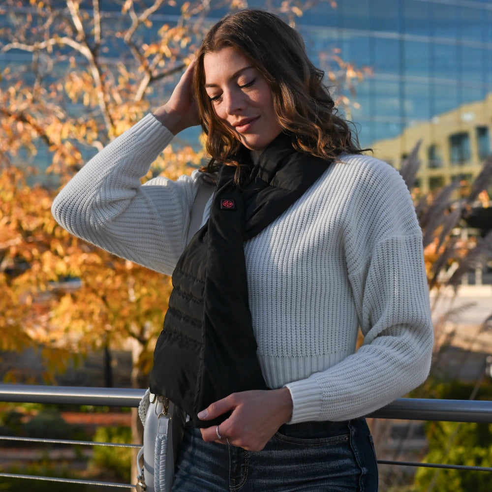 - Unisex Heated Down Puffer Scarf (55.1” x 5.5”)