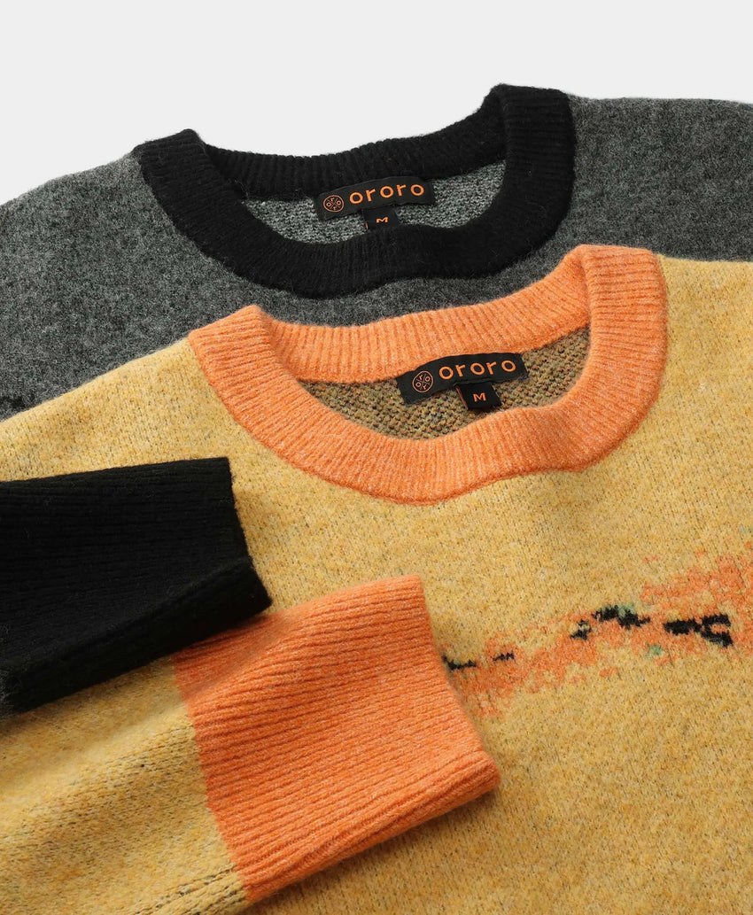 The Unisex Pullover Sweater combines art-inspired design with all-day comfort. Featuring an oversized silhouette and horizon pixel pattern, it’s as stylish as it is cozy. Layer it with ororo heated apparel on cold days or wear it solo. The soft mixed-fiber blend and bold colors make this a must-have for relaxed, casual looks.