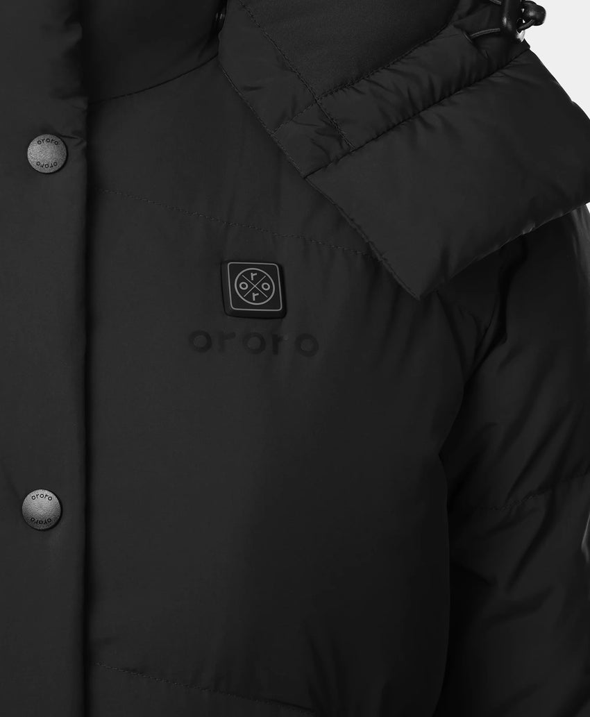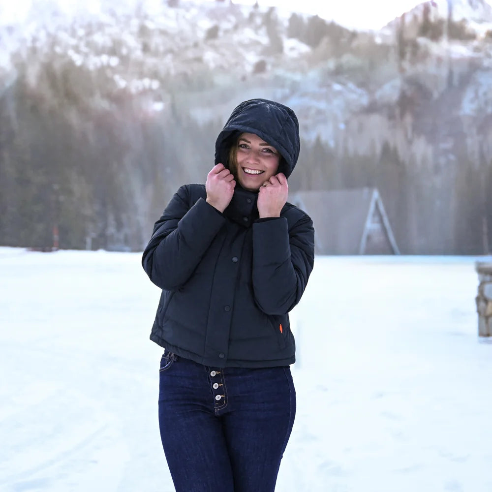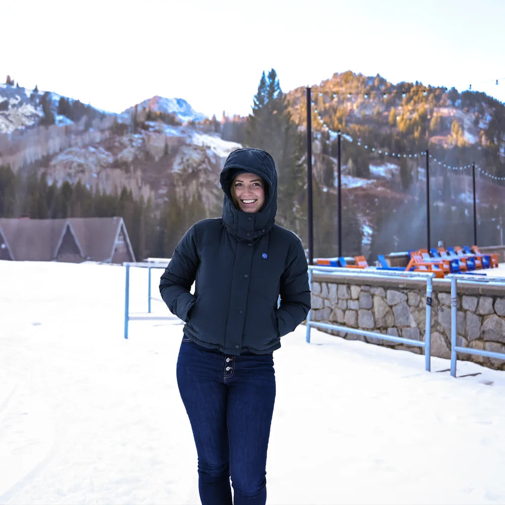 The Cloudpop Women’s Heated Puffer Down Jacket delivers reliable warmth across four targeted heating zones, while featuring a modern, cropped look with a dropped shoulder. Crafted with water-resistant fabric, 800-fill RDS-certified down, and a removable hood, this jacket provides lightweight insulation and comfort without the bulk.