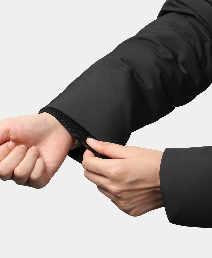 - 4 strategically placed heating zones across the left & right hand pockets, collar, and mid-back provide up to 8 hours of warmth for all-day wear.