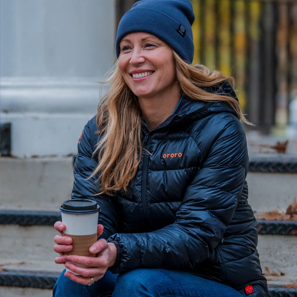 ororo’s first-ever packable heated jacket is here with the Aero Women’s Packable Heated Down Jacket. Made with travelers in mind, this 800 down-filled jacket is light weight with four heating zones across the front pockets, upper back and mid-back. The large inner pocket allows the jacket to pack into itself for easy access and stowing during travel.