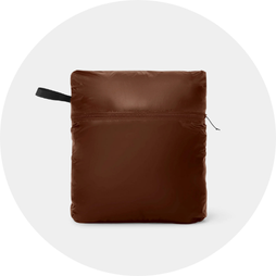 - Jacket packs into itself via a large inner pocket and zipper closure