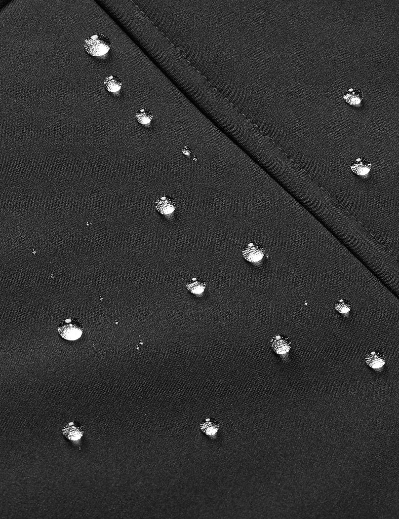 - Shell: 90% polyester, 10% spandex; with water resistance treatment