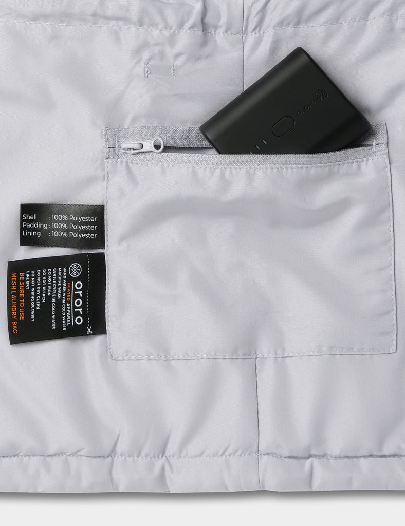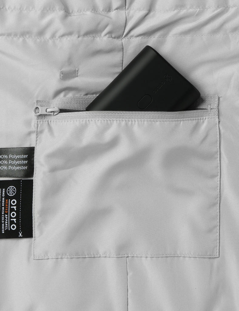 - 4 carbon fiber heating elements (left & right pocket, collar, mid-back)