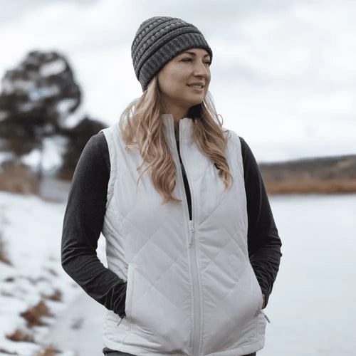 The elegant look of the quilted vest brings another level of classy to heated apparel. Whether you’re taking seasonal photos, taking your dog for a walk, or working from home or from an office, this vest is for you. Not only will the four heating zones across the back, the neck and the pockets keep your body warm, but the heating elements in the pockets will keep your hands warm too!