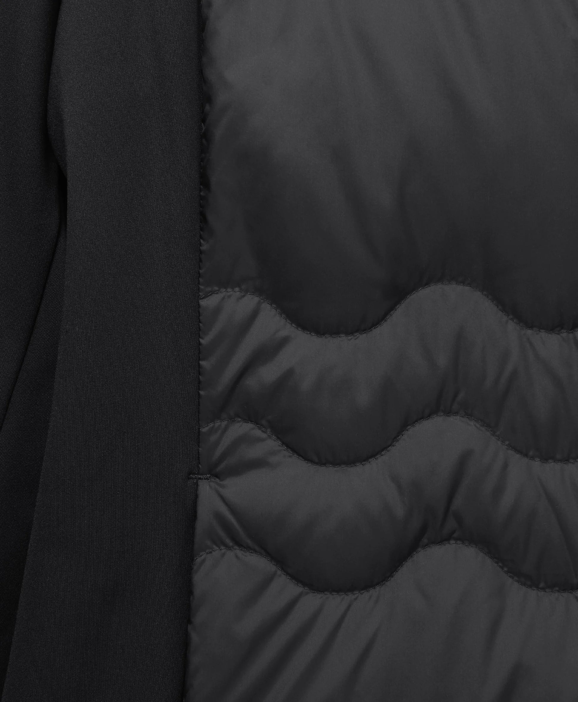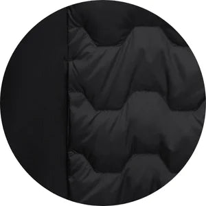 Featherlight down insulation holds warmth while the stretch panels maintain range of motion for active wear.
