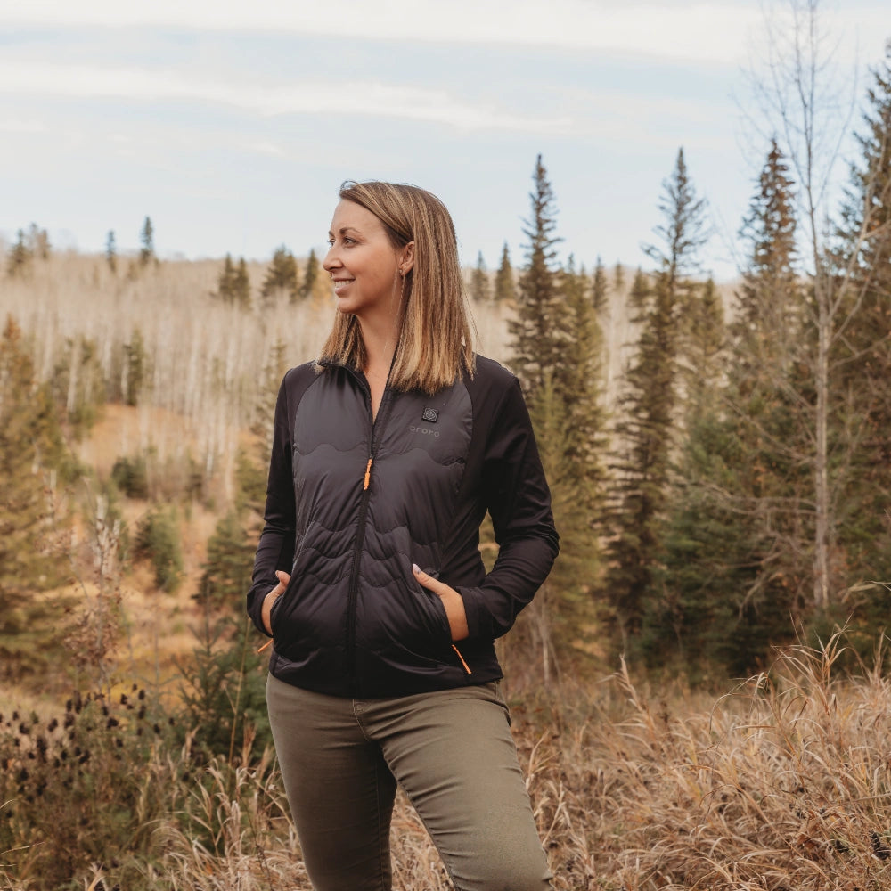 The Women’s Verbier Heated Down Jacket delivers adaptable warmth with effortless style. Designed for movement and built to perform, this down mid-layer combines 650-fill insulation with 4 targeted heating zones for complete core comfort. Water-repellent nylon and soft stretch knit panels allow flexibility and breathability during activity.